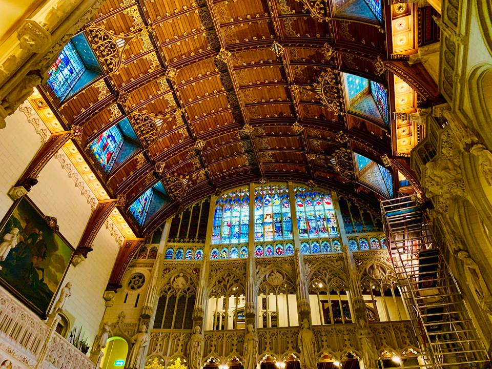 Этот потолок установили на месте внутреннего двора между донжонами замка. В живую потрясает масштабом: