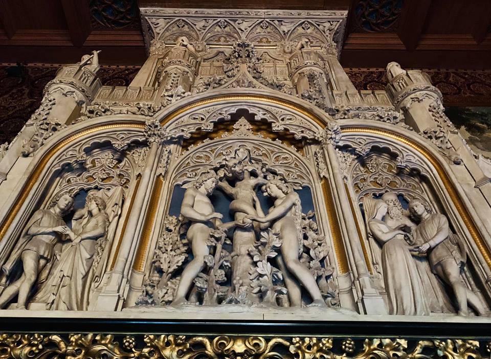 Верхний порт одного из каминов замка - знаменитые библейские пары: